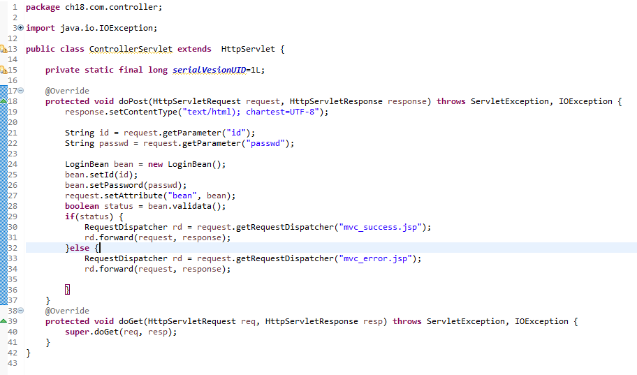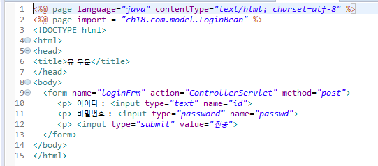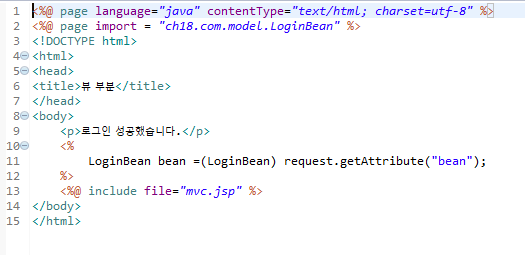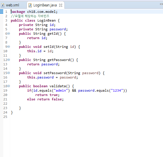 자바빈스 파일명은 ch18.com.model.LoginBean.java 로 지정하였음.
