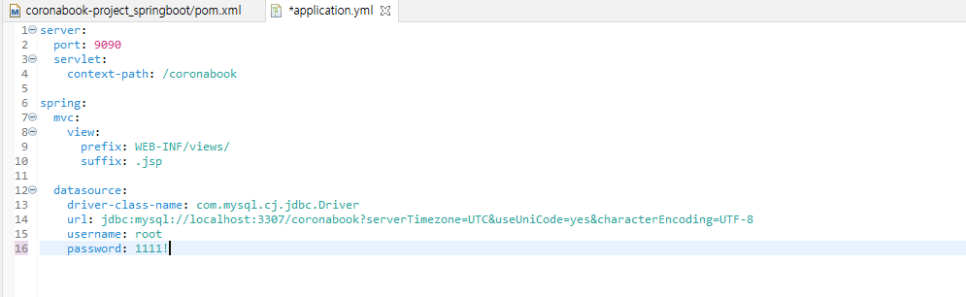 - application.yml에 port, context-path, view resolver, datasource를 설정하겠습니다.