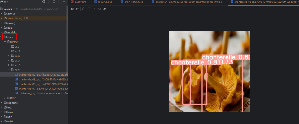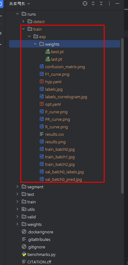 runs > detect 폴더 내에 exp 제일 최근것에서 확인이 가능합니다.