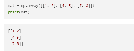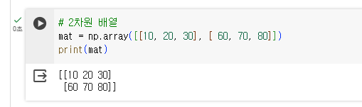 2차원 배열을 만들어보겠습니다. 주의할 점은 array() 안에 하나의 리스트만 들어가므로 리스트의 리스트를 넣어야 합니다.