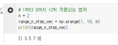 np.arange(i, j, k)는 i부터 j-1까지 k씩 증가하는 배열을 생성합니다.