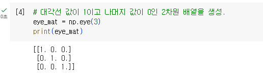 np.eye()는 대각선으로는 1이고 나머지는 0인 2차원 배열을 생성합니다.