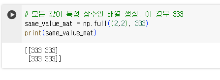 이 외에도 Numpy에는 배열을 만드는 다양한 방법이 존재하므로 필요한 방법을 사용하여 배열을 생성할 수 있습니다.