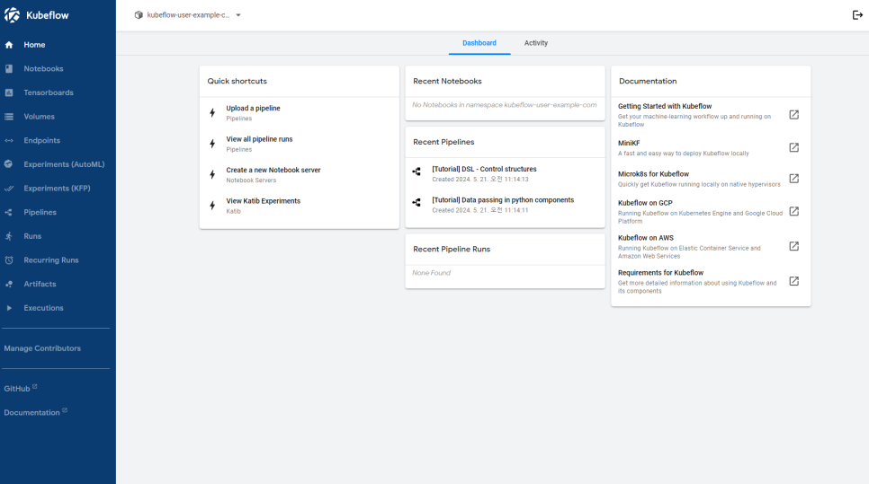 로컬 환경에서 포트 포워딩을 사용하여 Kubeflow UI에 접근