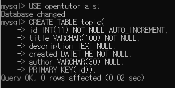 -> 컬럼명 타입(길이) NULL값지정 EXTRA지정