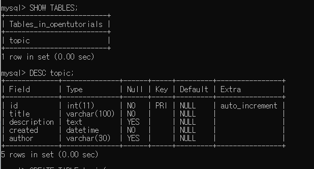 DESC [테이블명];