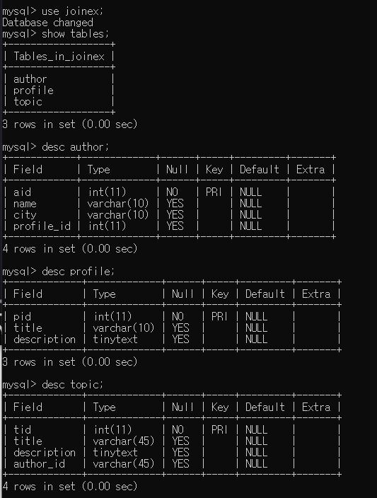 아래 사진은 조인을 하기위한 테이블을 생성하였음.