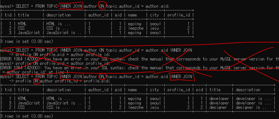 3개이상의 테이블 조인도 위와같이 붙여서 사용하면 된다.