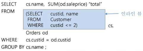 인라인 뷰는 그냥 하나의 테이블이라고 생각하고 사용하시면 됩니다. 괄호 안에 넣고 쓴다는 게 다를 뿐, 인라인 뷰를 이용해서 join도 하고 where절에 조건도 걸고 하실 수 있습니다.