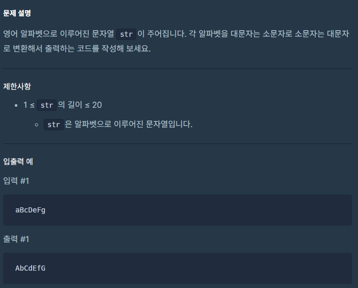 프로그래머스 : 대소문자 바꿔서 출력하기 (파이썬)